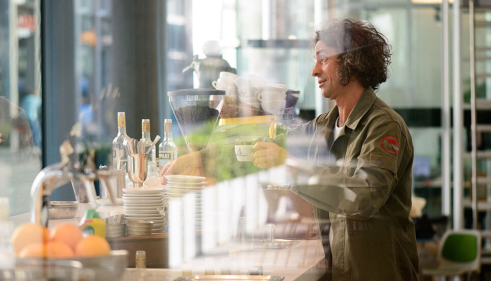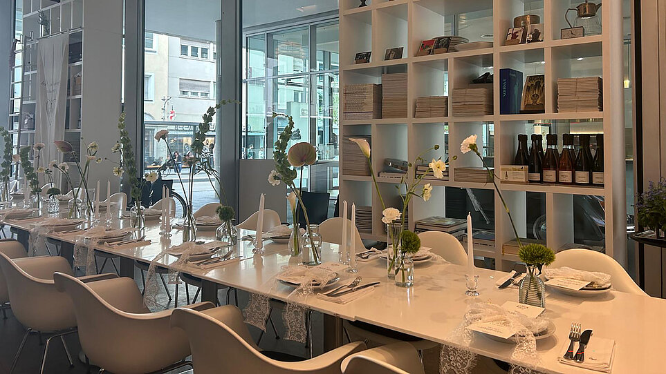Helle, moderne Räume, eine entspannte Atmosphäre und ein urbanes Setting, das Kunst, Kulinarik und Geselligkeit verbindet.
